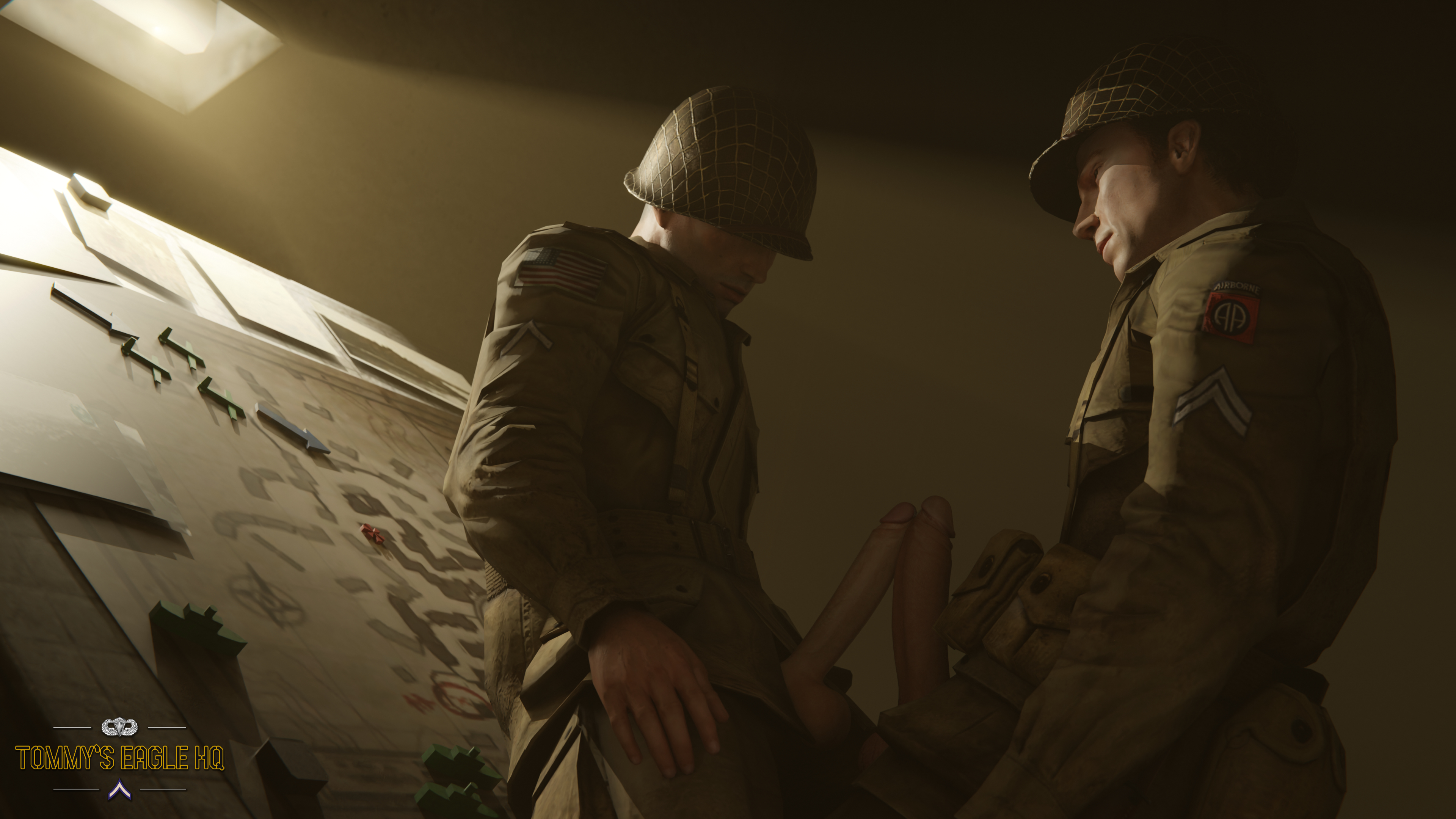 The two paratroopers needed some extra time together after the briefing had concluded...