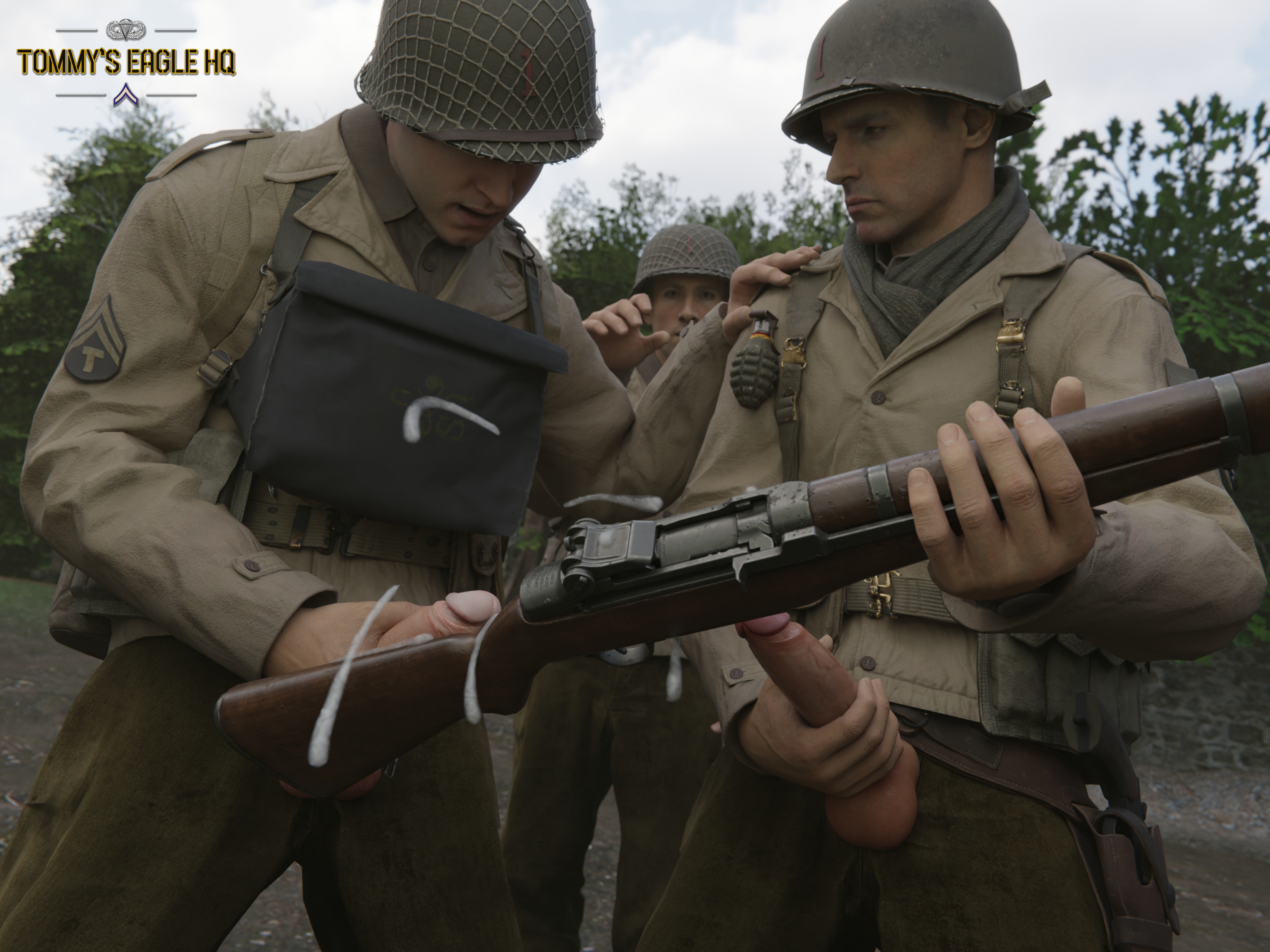 The boys spend free time playing with their equipment...